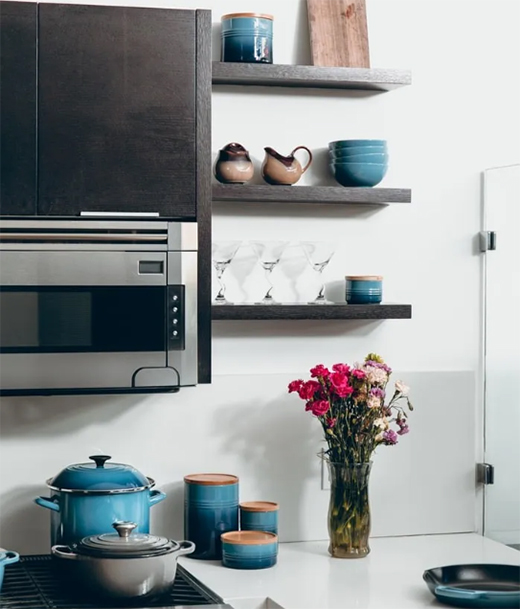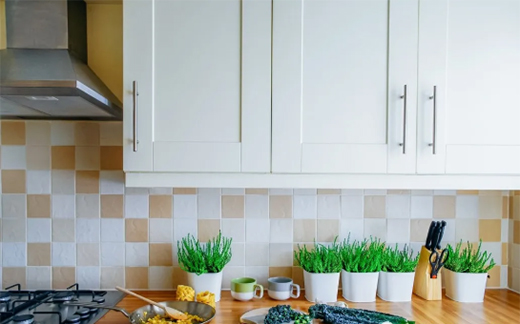 3、物品擺放:根據(jù)平時的使用頻率,決定物品的擺放位置,鍋具放在爐灶附近,過濾網(wǎng)放水槽附近,食物柜的位置最好遠離廚具與冰箱的散熱孔,并保持干燥和清潔。
