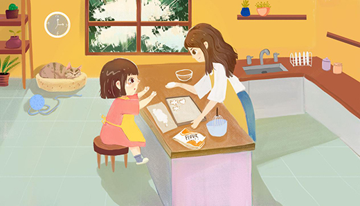 廚房,猶如屋里的活動場,數步之內的空間,不臥不坐,“動起來”才更有生活氣息。“學會獨立做飯炒菜”,是父母為你出的人生考題,但不必驚慌埋頭苦學,父母總會陪伴孩子一起“解答疑難”。從“坐享其成”到“自給自足”,在熱鬧的溝通里,在忐忑的嘗試中,在滿足的作品前,父母和孩子的互動更為直接,相互為榜樣和驕傲,相互為依賴和信任,這是人間最自然純粹的“合作”。