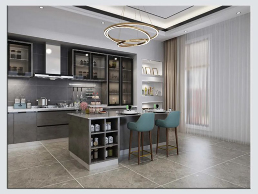 廚柜開放式的展示設(shè)計,搭配鋼化玻璃,在提高空間既視感的同時又完美的解決落灰的煩惱,玻璃通透的材質(zhì)與不銹鋼金屬材質(zhì)的結(jié)合,簡單卻不失品味。