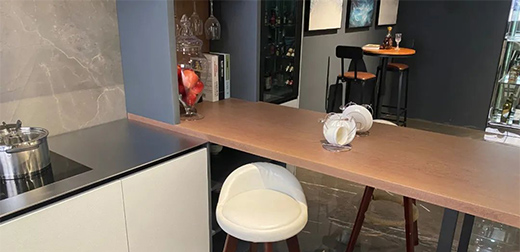 卡利亞采用熱固微晶工藝技術,讓不銹鋼門板呈現不同的飾面效果,可根據不同場景需要,不同使用標準,不同風格變換,靈活定制符合需求的不銹鋼廚柜。