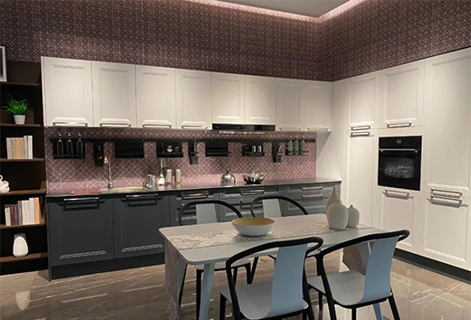 卡利亞還擁有自主研發的熱固微晶工藝,其中的煙熏色、仿古柚木等木紋自帶輕奢高級感,提升廚柜的顏值,讓廚房不再單調。此外,仿巖板、純色系也適配當下流行的多種風格,表達對高品位生活的追求。