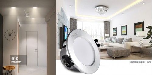 進(jìn)門太亮,容易產(chǎn)生眩光,刺眼,在玄關(guān)處可以使用色溫較低的暖光,為剛回家的屋主提供視覺和光線的緩沖過渡。比如一盞5W射燈/筒燈即可。