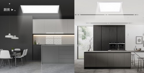 廚房燈具的選擇應(yīng)以易擦洗耐腐蝕為標(biāo)準(zhǔn)。廚房應(yīng)該采用白色燈光,過暖或者過冷都會(huì)影響對(duì)食材的判斷。頂部中央裝上防水防塵的吸頂燈作為廚房整體照明的主燈,安全易清潔,突出廚房的明凈感。吊柜下方可以增加焦點(diǎn)光,安裝小射燈用于局部和重點(diǎn)照明,避免廚房背光摸黑切菜。