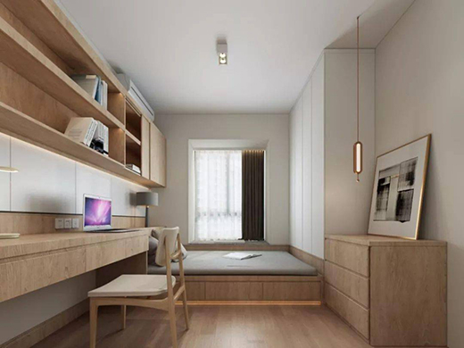 對(duì)于層高比較充足的臥室,可以臥室做上吊頂,然后暗裝上筒燈,讓空間照明更加均勻舒適,而且空間視覺(jué)感也會(huì)更加簡(jiǎn)潔大方。