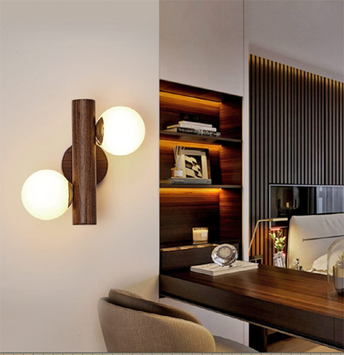 胡桃木與燈具的結合,木材質地堅硬,經久耐用,其斜而交錯的紋理,結合燈具簡約的造型,營造出清凈既定的禪意氛圍,展現意蘊深遠的東方美學。
