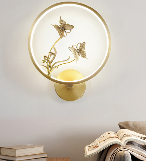 這款蝶戀花新中式壁燈,全銅鍛造,做工精巧細致,枝葉紋路清晰,蝴蝶翩然起舞,美好事物靈動瞬間在光的映襯下定格,每一處細節的拿捏都是設計師對禪意美學的解讀。