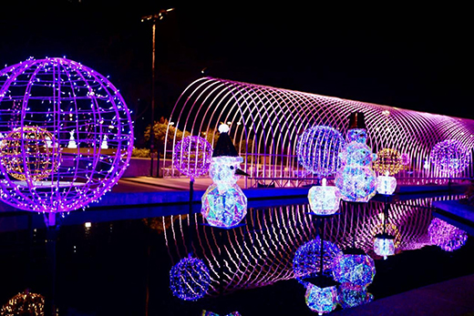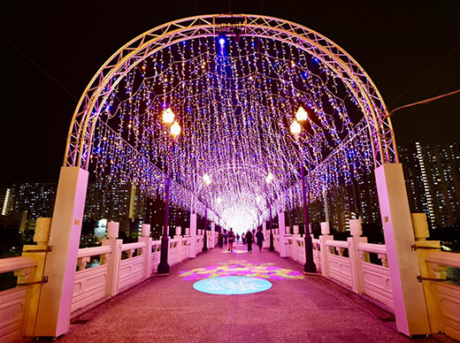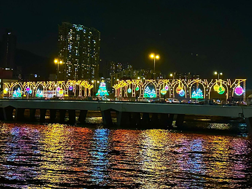 另一方面,傳統沙田市區的節日燈飾亦不遑多讓。沙田公園的幻彩水晶雪人和圣誕樹、夢想成真水晶球,以及夢幻時光隧道繼續為市民帶來一場絢麗奪目的光影盛宴;經典閃亮的瀝源橋、沙燕橋和翠榕橋燈飾長廊,以及大圍八爪魚天橋的光影裝置等,攜手以璀璨閃耀的光彩照亮沙田,處處為市民送上節日祝福。