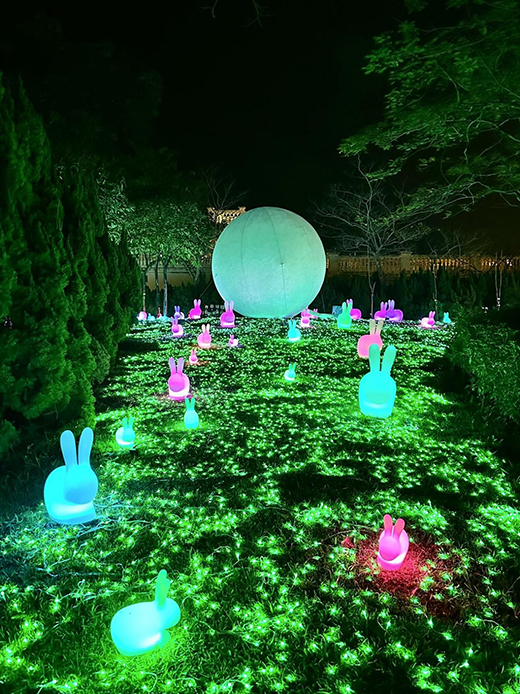 今年沙田的節日燈飾,以“星河閃動.雪亮沙田”為主題,為沙田區添上一抹雪亮而夢幻的節日氣氛。節日燈飾亦由傳統的沙田市中心腹地,閃爍延伸至馬鞍山及烏溪沙!除了最經典瑰麗的瀝源橋之外,今年節日燈飾最大的亮點是馬鞍山公園的大型星河燈飾陣列,以及海洋廣場的夢幻星空。璀璨閃爍的夢幻兔子,伴隨著五彩繽紛的星河光影裝置,在優美的吐露港映襯下,洋溢出佳節的夢幻與溫馨氛圍。此外,大家亦不妨到烏溪沙碼頭走走,在潮聲浪聲之下,一睹如夢幻紫龍般的浪漫燈飾,定有一番韻味!