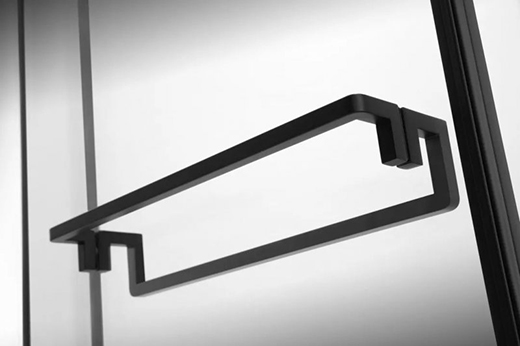 純黑色拉手,全304不銹鋼打磨,線條簡單圓潤,握感飽滿十足,內外拉手的銜接自然而優雅。HJ系列拉手可懸掛浴巾、浴袍,時尚中不失人性化功能設計,巧妙而貼心。