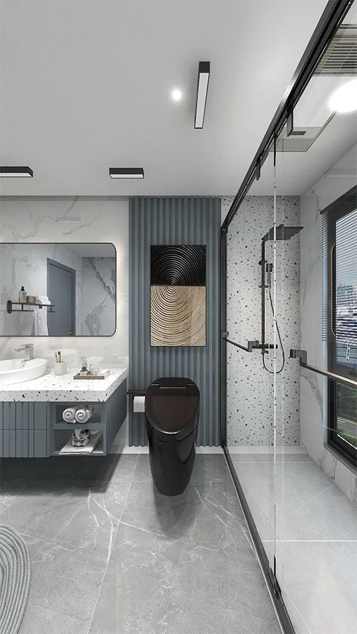 衛(wèi)生間面積:約6.6㎡要求:輕奢時(shí)尚,干濕分離