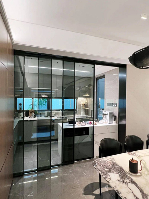 全景門可以讓空間更加通透,所有美好的風景盡收眼底。它作為高端室內玻璃隔斷門,是極簡風格中具代表性的家居產品。