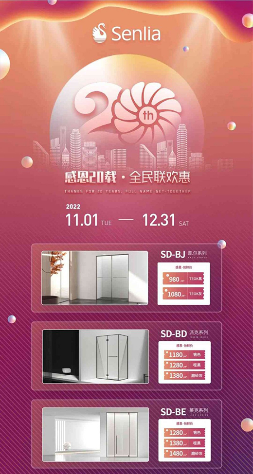 圣莉亞淋浴房感恩20載·全民聯(lián)歡惠,勁爆福利來襲