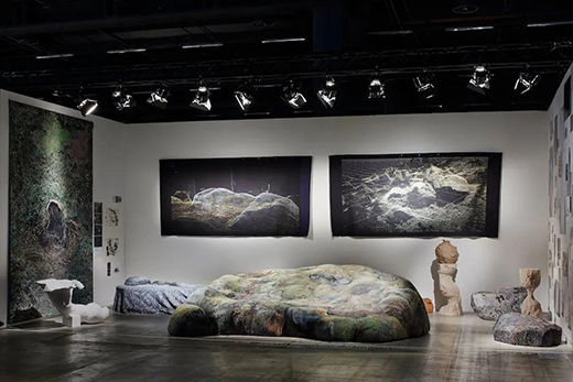 首先,Front Design對大量不同的巖石景觀和海邊景色進行拍攝、3D掃描和手繪草圖,接著利用這些圖像構建出數字化家具模型。Patrizia Moroso 隨后聘請了Kvadrat Febrik和Limonta等紡織專家來開發數字印花面料,生產出模仿Front Design拍攝的圖像提花和Gobelins織物,在紡織品上重建自然表面。最后,將織物覆蓋在利用銑床生產的具有巖石形狀或海浪形態的木制家具上。