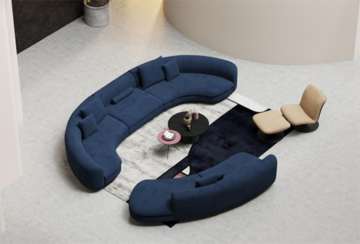 由于弧形沙發(fā)因其自身結(jié)構(gòu)的獨(dú)特性,生來就具備了對抗各種異型空間的天賦,無論多么令人頭疼的空間問題,在它的修飾下都能實現(xiàn)完美逆襲。洛品家具卡薩系列深藍(lán)色弧型沙發(fā),是非常暢銷的一款