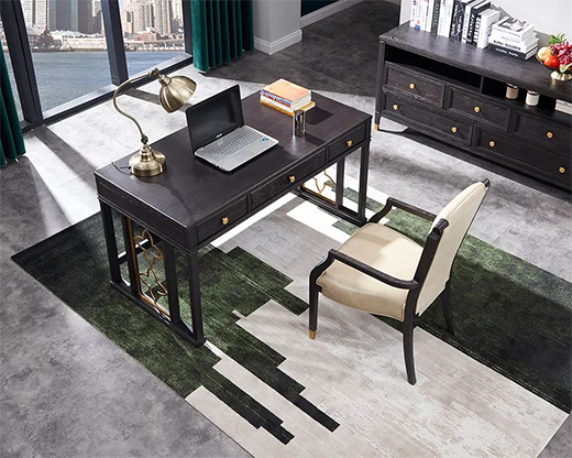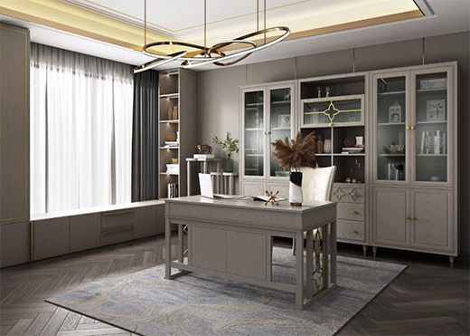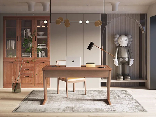 同時書桌的顏色深淺要注意,可參考書房的硬裝顏色來搭配。若硬裝是淺色系,那么書桌可選擇深色,以加強空間里的層次美感。