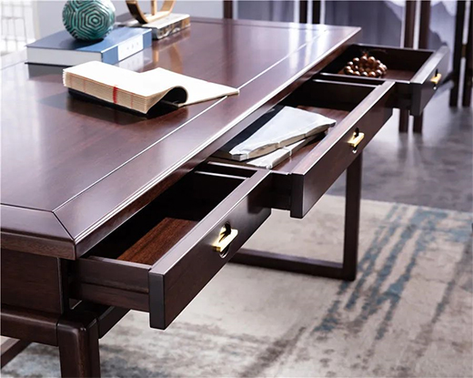 從外觀上看,實木書桌不僅耐用還耐看,會讓書房的裝飾更顯大氣和檔次,體現一種生活的高品位。