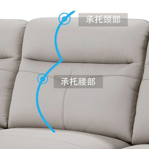 ①亮眼的弧形扶手高度偏低,適合枕靠,輕松滿足坐躺靠需求;