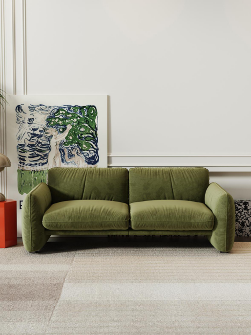 洛品有家此款沙發主打清新不失雅致韻味的風格,沉穩中流露出輕奢,帶來一份祥和與靜怡,如同微風輕拂柳梢,在早春時節最能打動人心。在造型上,此款沙發簡潔而豐盈,線條流暢而不呆板,突顯其優雅而簡約的氣質。通過絨布與高密高彈海綿的融合,內外兼修打造有層次的舒適坐感,在春日里平添一份踏實感和舒適感。