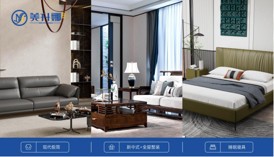 美升娜深耕實木及軟體家具領域20多年,搭建了新中式家具+全屋整裝、現代極簡軟體家具、睡眠寢具三大產品矩陣,憑借全品類、高顏值、高質量形成了極具優勢的市場競爭力。其中新中式家具廣受消費者喜愛,美升娜是名副其實的新中式家具細分品類佼佼者。