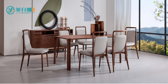 ·甄選良材,奠定溫暖底蘊:美升娜甄選色澤深邃、紋理如畫的北美黑胡桃木。其經(jīng)手工精細打磨后,觸感溫潤如玉,天然的木紋為家居空間注入一份經(jīng)年沉淀的從容與雅致,成為團圓時光最溫暖的底色。