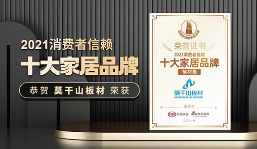 近日,由樂居家居與新浪家居主辦的「2021消費者信賴十大家居品牌」評選活動落下帷幕,入選榜單正式揭曉。莫干山板材突出重圍,成功上榜「2021消費者信賴十大輔材品牌」。