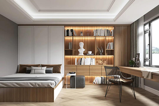 生活多浮躁,家居則需要多一些沉穩、溫潤柔和,棕色系板材是不錯的選擇,通過與白色搭配,顏色相輝映讓空間層次分明,源于大地色系的棕色本身自帶沉靜內斂的特點,傳承著自然的包容性,也會讓心更放松寬廣。
