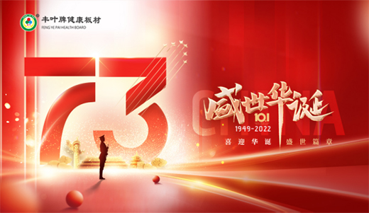 繼往開來,前赴后繼。豐葉板材視產品質量為企業生命,致力于成為改善大眾家居生活環境的卓越家居建材企業。豐葉板材高舉“新國貨”旗幟,致力于成為國人驕傲的民族品牌,榮譽加持但不忘初心,讓民族自豪感成為砥礪前行的最大動力。在舉國歡慶周年華誕之際,豐葉板材愿山河無恙,祖國安康!