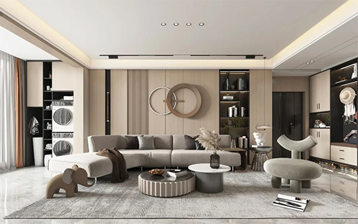 冬日暖陽,慵懶的陽光灑下,淺色的木紋家居為家添加一絲隱私慵懶的氣息。溫潤的暖棕色調散發著柔和的暖意,為這親近自然的材質帶來自然的觸感,溫暖的木紋平添一種朦朧美感。伴隨著淳樸的自然氣息和人文味道,在空間設計中演繹著現代生活所追求的質感與品位。