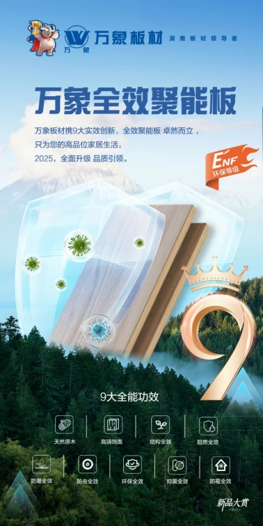 1999年9月1日,萬象品牌成立,2002年,旺德府集團產品創新研究所研發了省內木制品行業第一張對甲醛含量有控制的板材;2004年,萬象E0級板材問世作為中國環保板材領域的拓路先鋒。萬象持續以創新為引擎,在關鍵技術領域實現重大突破,不斷推動行業標準向更高維度躍升,持續為消費者創造健康環保的家居解決方案,當之無愧成為“湖南板材領導者”。