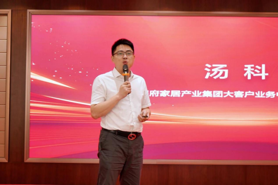 旺德府家居集團(tuán)大客戶業(yè)務(wù)中心總經(jīng)理湯科先生,圍繞政策與產(chǎn)品賦能體系進(jìn)行詳細(xì)解讀。在闡述品牌及核心產(chǎn)品競(jìng)爭(zhēng)優(yōu)勢(shì)的同時(shí),重點(diǎn)強(qiáng)調(diào)板材+輔材的產(chǎn)品推廣布局,明確以此助力品牌與合作伙伴共同開(kāi)拓高端家居市場(chǎng)。