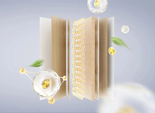 相較于傳統(tǒng)豆膠,大豆蛋白膠不僅擁有更優(yōu)異的粘結(jié)性能表現(xiàn),還一并解決了傳統(tǒng)豆膠耐水性差、防霉性差、工藝適應(yīng)性不強(qiáng)等問題,強(qiáng)化了莫干山豆茵板抗壓耐磨、自然清新、耐水防霉、不易老化變形等特性。