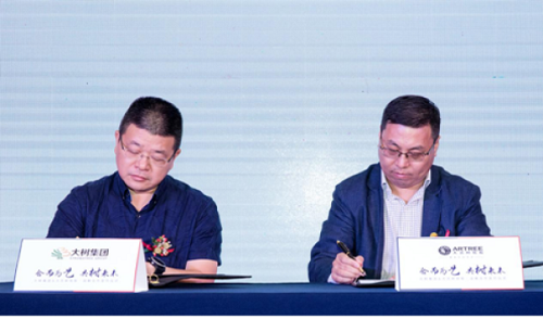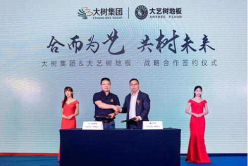 在此次品鑒會上,大藝樹地板與浙江大樹集團也開展了一場別開生面的簽約儀式。大樹集團董事長張瑋先生與大藝樹地板總經理劉振江作為雙方代表出席會議,并以“合而為藝 共樹未來”為主題,簽訂了戰略合作協議。
