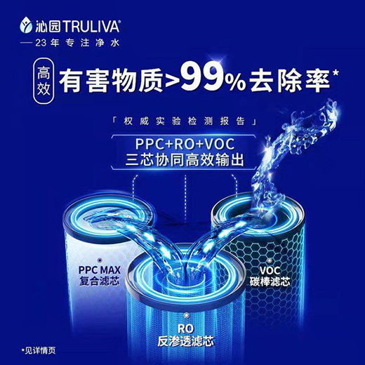 沁園自從1998年發(fā)明飲水機(jī)專用凈水器以來(lái),始終著眼于守護(hù)飲水健康,深耕科技創(chuàng)新,以先進(jìn)技術(shù)確保安全好水。去年開(kāi)始應(yīng)用于旗下部分產(chǎn)品的恒凈極濾??科技不斷優(yōu)化,從3芯5級(jí)精濾升級(jí)為7維RO納米篩,可以有效濾除64種有害物質(zhì)[1];整機(jī)三芯系統(tǒng)設(shè)計(jì),包括RO反滲透濾芯、前置復(fù)合濾芯,以及CTO炭棒濾芯,協(xié)同高效輸出,幫助整機(jī)達(dá)到99%的去除率[2];1000G的產(chǎn)品過(guò)濾性能可以實(shí)現(xiàn)9噸純水性能不衰減[2]。三管齊下,為消費(fèi)者帶來(lái)純凈、高效、持久的過(guò)濾體驗(yàn)。