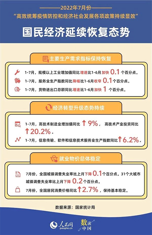 7月份,隨著穩經濟一攬子政策進一步落實和顯效,我國經濟繼續修復,主要指標基本穩定。