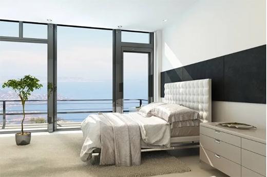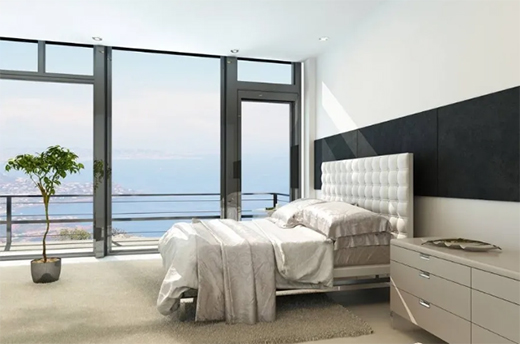全落地窗的設計,一定要做好防盜措施,然后注意防曬,注意寒冷的季節,雖然很美,景色很好,但也要注意冷熱天氣!最好安裝具有隔音隔熱性能的鋁合金斷橋門窗,耐高溫,抗寒冷,防雨防風。