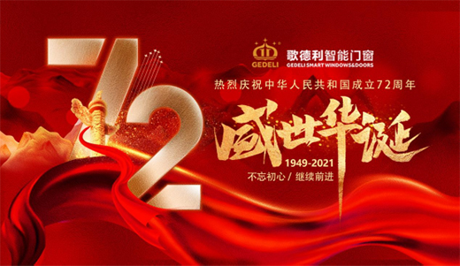 自信而不自傲,知足而不滿足!當歌德利獲得過“中國門窗行業十佳名優品牌”、“中國十大智能門窗品牌”、“中國十大鋁合金門窗品牌”等榮譽時,歌德利更是立志要成為具有“國家競爭力的民族品牌”,共筑“中國夢”與“品牌夢”。歌德利智能門窗取得的這些成就,是為祖國生日獻上的一份禮物,同時也為我們的祖國繁榮富強、發展壯大感到無比的驕傲和自豪。
