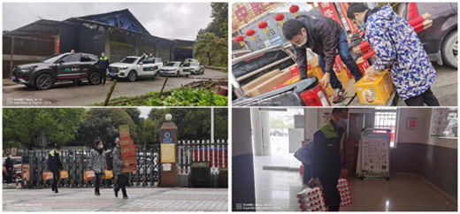 3月22日當天,常度愛心團隊向懷化市鶴城區城南街道辦事處、公安局、交警大隊、高速交警支隊等單位捐贈瓶裝水、牛奶、泡面等生活物質,為連日堅守在疫情防控工作崗位的戰士們送去親切關懷!