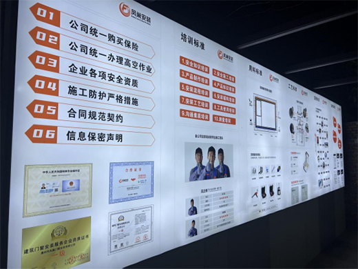 品質是一個企業的生命,品質的堅守見證的是品牌實力。從生產到制造,從終端營銷到客戶服務,鳳梧居在每一個環節都竭盡全力,力求做到完美。為了深度賦能經銷商,鳳梧居成立的鳳巢安裝公司推出了“安全標準”、“培訓標準”、“用料標準”、“工藝標準”、“流程標準”和“驗收標準”六大標準安裝體系,形成一套適用于全行業的標準指南。