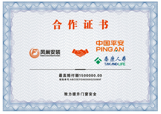 據了解,“鳳巢安裝”取得了“建筑門窗安裝服務企業一級資質證書”,并攜手中國平安和康泰人壽,為消費者全面構建了來自企業和國家第三方機構的雙重保險,助力中國門窗行業持續性健康發展。