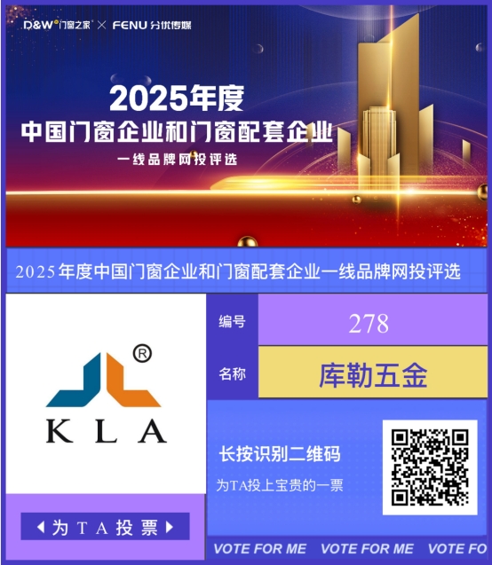 - 中國門窗和門窗配套企業一線品牌網投評選開啟,投票助力庫勒五金! - 2025/08/23