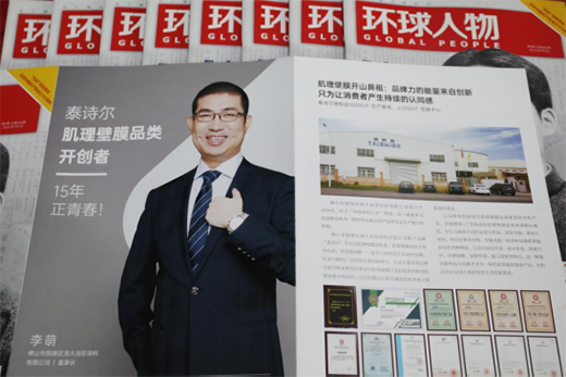 據最新消息,佛山市順德區清大潤彩涂料有限公司董事長李萌先生榮登我國權威雜志——《環球人物》,向廣大讀者講述了泰詩爾肌理壁膜開山鼻祖的品牌故事。