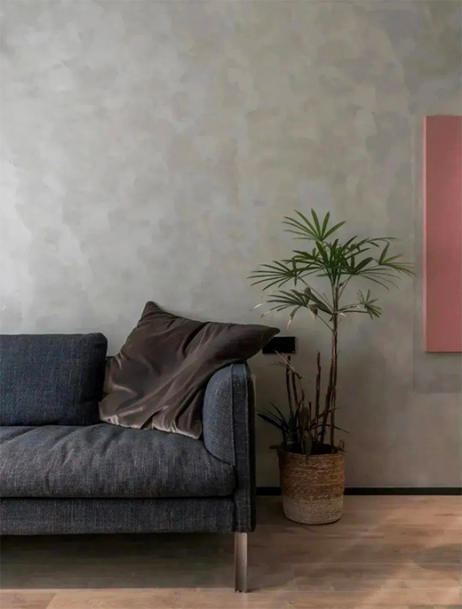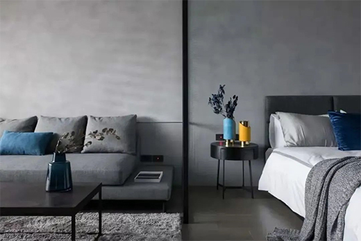 又叫清水混凝土,涂刷出來就是類似于水泥墻的效果,一般用于現代風、工業風、極簡風。