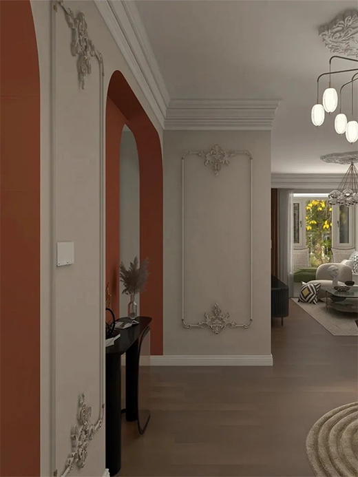 帝卡斯藝術(shù)涂料整個(gè)客廳采用大膽的色調(diào)來(lái)進(jìn)行了一場(chǎng)混搭,突破了傳統(tǒng)的設(shè)計(jì),墻面是藝術(shù)漆,以暖白作為整體色系搭配,與復(fù)古裝飾混搭融入其中,把色彩熱烈的碰撞拉回平衡舒適的境地。