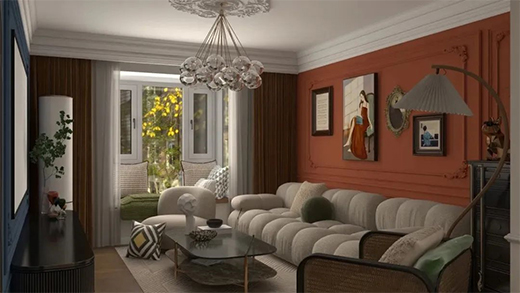 帝卡斯藝術(shù)涂料屋主不喜歡冷淡的黑白灰,也不喜歡有太多的設(shè)限和固定思維,更喜歡有點(diǎn)復(fù)古、無(wú)拘無(wú)束的感覺(jué),所以在色彩搭配和軟裝裝飾上,打造相對(duì)多變的“風(fēng)馬牛不相及”的混搭風(fēng)。低明度的全相型配色,大膽的色彩搭配和處處彰顯品質(zhì)的紋祥細(xì)節(jié),張揚(yáng)不失內(nèi)涵;設(shè)計(jì)感強(qiáng)的家具,異域風(fēng)情的織物裝飾,令人耳目一新。