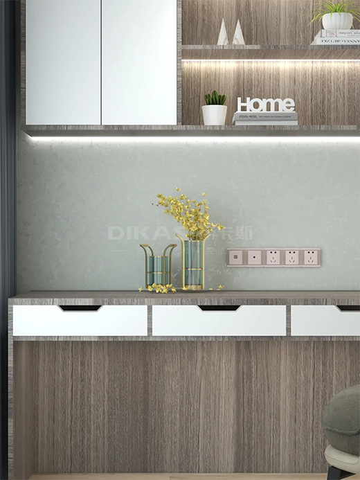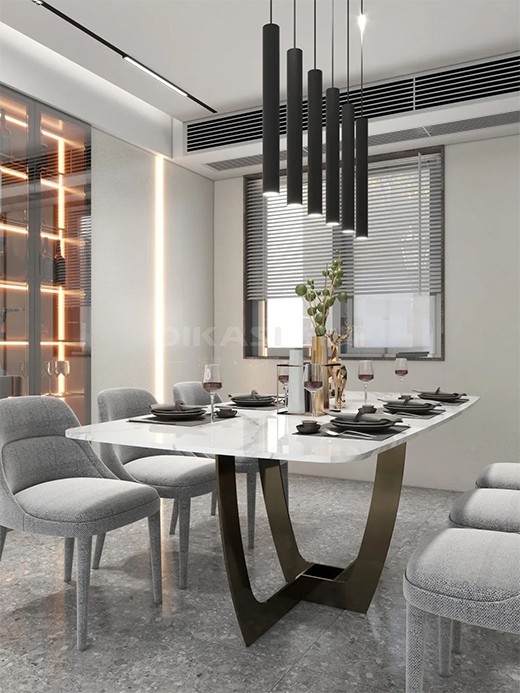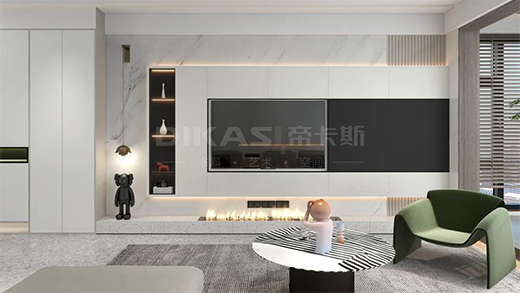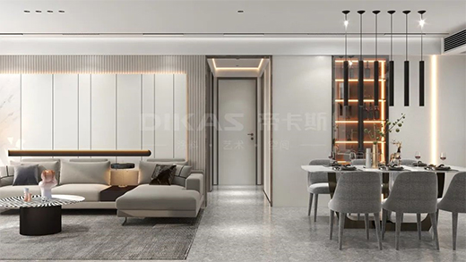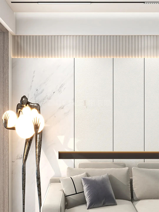 「卡瑪拉」豐富而生動的觸感,毫無矯飾的不規則元素,緩解了空間單調乏味,高級灰調,帶來別致輕奢感,時尚的質感生活在此刻定格。