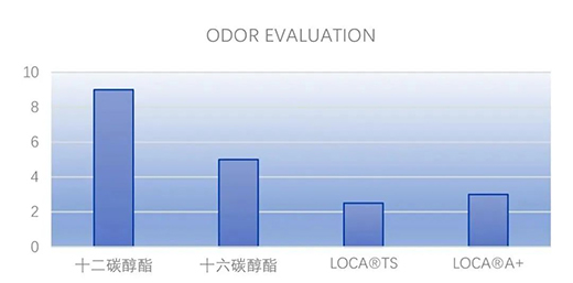 綜上所述,通過對成膜助劑的氣味評估、成膜效率測試,以及成膜助劑對漆膜開放時間、硬度建立、抗粘連等性能的測試,實驗結果表明,LOCA?TS和LOCA?A+的成膜效率較高,也可一定程度上延長漆膜的開放時間,但由于LOCA?A+的揮發速率較慢,在硬度建立和粘連性上,LOCA?TS相對表現更為優異,適用于藝術涂料對產品低氣味高性能的綜合要求。