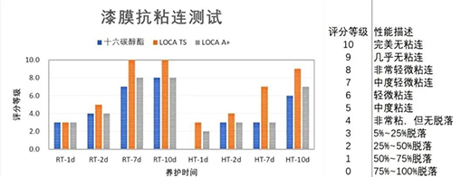 測試結果表明,由于LOCA?A+揮發速率較慢,可一定程度上延長漆膜的開放時間。