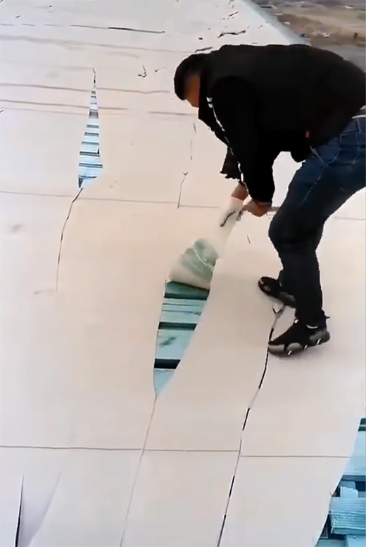 哈爾濱某項目PVC屋面經歷冰雹襲擊后的照片