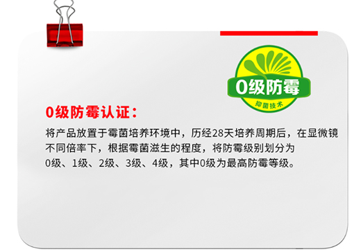 防霉標準達到了最高的0級,防霉功能長效又穩固。