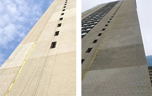 此外,作為一款將保溫層置于建筑物外墻外側,與基層墻體采用粘錨方式固定的系統,臥牛山薄抹灰外墻外保溫系統是由保溫芯材、膠粘劑、抹面膠漿、玻纖網格布及錨固件、飾面層組成,必要時可采用護角、托架等配件以及防火構造措施。系統具有錨、粘相結合的施工特點,再輔之以專用抹面砂漿壓入耐堿玻纖網格布,進行鋪設,能夠有效增強抗風壓和抗沖擊性,該產品是一款適用于超低能耗的建材。